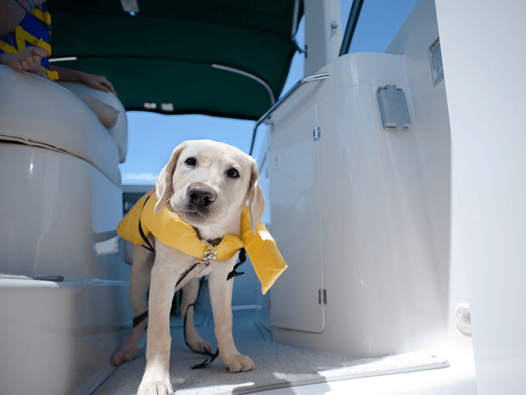 Comfort & enrichment: Bring familiar bedding, toys, and a covered area where the dog can escape sun or wind. A happy dog helps maintain calm aboard.