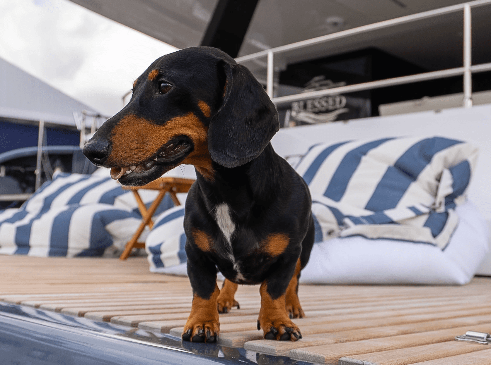 On departure days, allow extra time for the dog to familiarise with the yacht stationary. Familiar smells, bedding, and a calm introduction help ease them into the motion of the vessel.