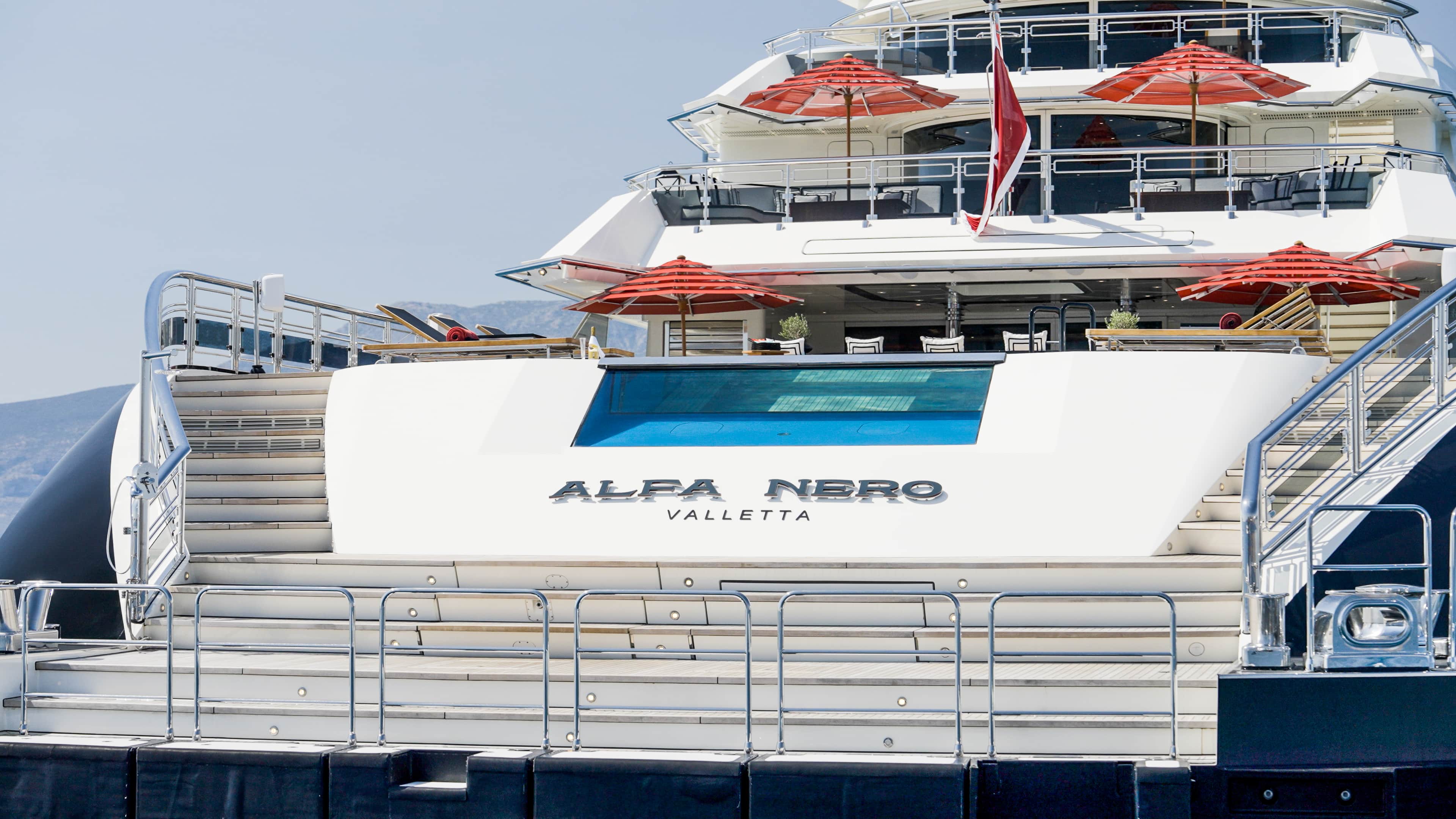 When Alfa Nero launched in 2007 from Oceanco's Alblasserdam shipyard, she introduced ideas that have since become expected on large yachts. The convertible aft deck pool—with its glass infinity edge that can drain to create a flush deck or helipad—was revolutionary. Today, transformable deck spaces appear across the new-build market, but Alfa Nero did it first, and arguably still does it best.
