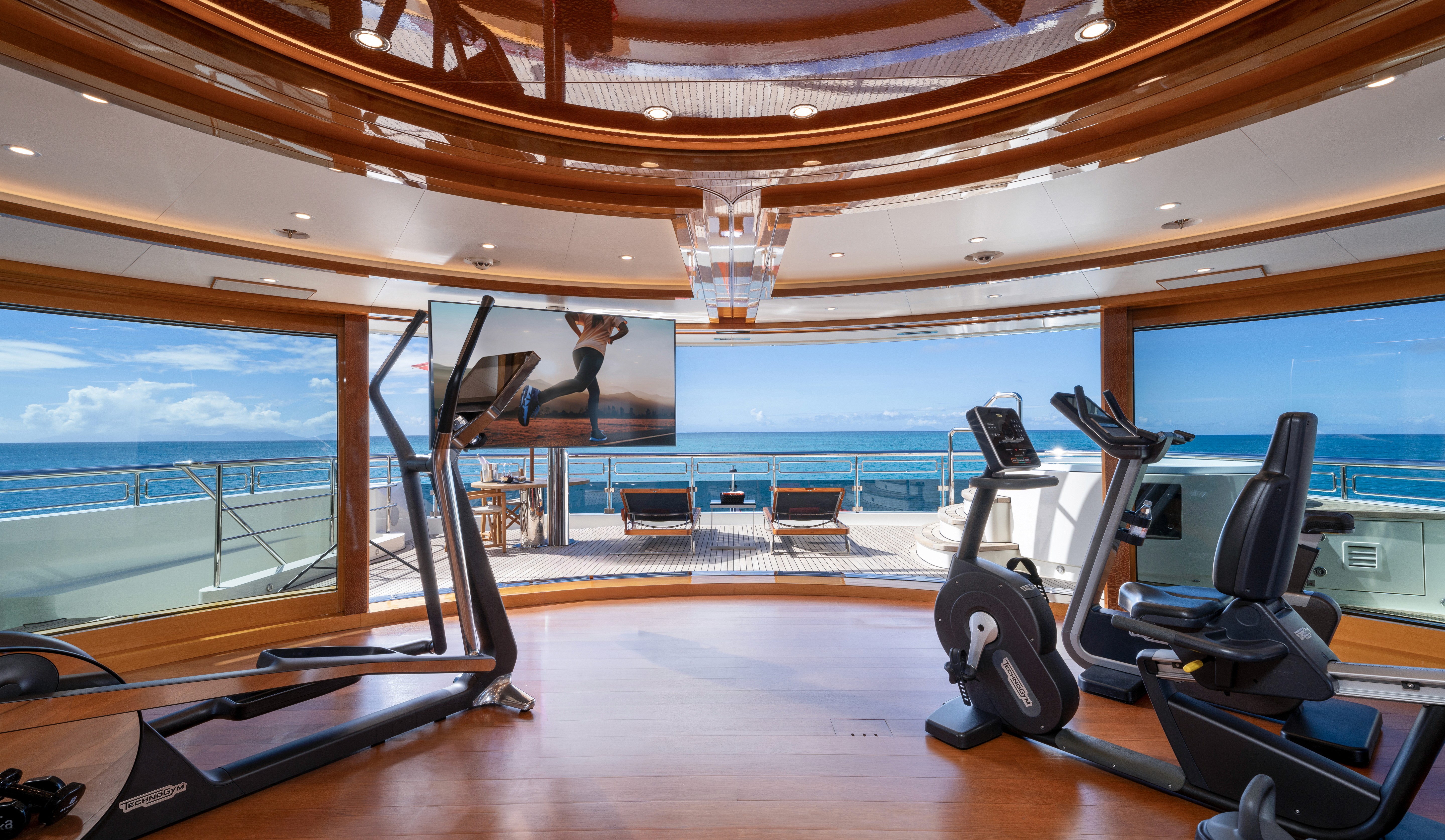 Her exterior lines by Nuvolari Lenard remain striking rather than dated. At 81 metres with a 14-metre beam and 3.7-metre draught, she carries her volume gracefully, avoiding the boxy profile that plagued many yachts of her era. Powered by twin MTU engines, she cruises at 18 knots with a range of 6,000 nautical miles and reaches a top speed of 20 knots. Fitted with stabilisers at anchor and underway, she performs across conditions.